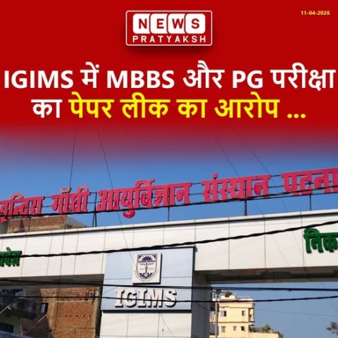 पटना के IGIMS में MBBS और PG अंतिम वर्ष की परीक्षाओं में धांधली. पेपर लीक और उत्तर पुस्तिकाओं में छेड़छाड़ के आरोप बेनाम ई-मेल के जरिए सामने आया परीक्षा घोटाले का मामला. 13 मार्च को की गई थी शिकायत. आरोपों के 28 दिन बाद IGIMS प्रशासन ने बनाई चार सदस्यीय जांच समिति. प्रभारी निदेशक डॉ. ओम कुमार ने 7 कार्य दिवस में मांगी जांच रिपोर्ट. प्रिंसिपल डॉ. रंजीत गुहा को जांच प्रक्रिया से बाहर रखने पर उठा विवाद. प्रिंसिपल बोले- छात्रों से जुड़े मामले में मुझे न बैठक में बुलाया गया और ना ही समिति में रखा गया. पेपर लीक और आंसर शीट में हेरफेर के लिए लाखों की डील के गंभीर आरोप. कुछ छात्रों की कॉपियां बाहर से लिखवाने और सिस्टम में एडजस्ट कराने का दावा. परीक्षा शाखा के CCTV फुटेज में संदिग्ध गतिविधियां आने की बात. पहले भी प्रारंभिक जांच में मिले थे अनियमितता के संकेत. नहीं हुई थी कार्रवाई.