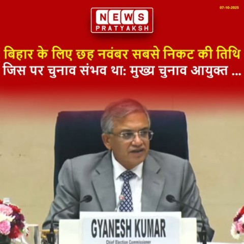 छठ पर्व के तुरंत बाद बिहार विधानसभा चुनाव कराने की राजनीतिक दलों की मांग के बीच मुख्य चुनाव आयुक्त ज्ञानेश कुमार ने कहा कि बिहार के लिए ‘संभवत:’ छह नवंबर सबसे निकट की तिथि है जिस पर चुनाव संभव था।