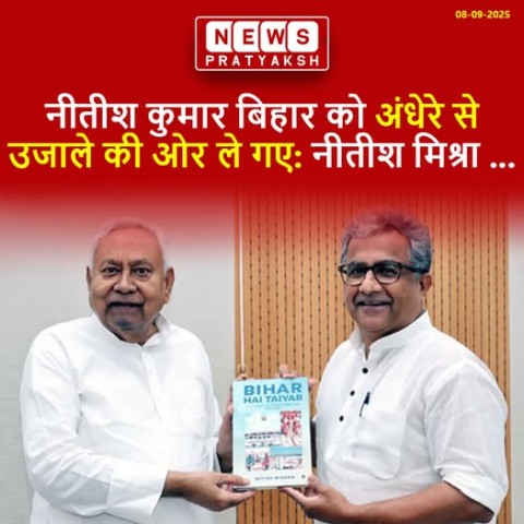 बिहार सरकार में मंत्री नीतीश मिश्रा ने मुख्यमंत्री नीतीश कुमार के 20 साल के शासन की सराहना करते हुए कहा कि वे अंधेरे में डूबे बिहार को उजाले की ओर ले गए। मंत्री नीतीश मिश्रा द्वारा लिखित किताब 'बिहार है तैयार' का रविवार को विमोचन हुआ। इस किताब के लेखक और सरकार में मंत्री नीतीश मिश्रा ने कहा कि इस किताब में मुख्यमंत्री नीतीश कुमार के नेतृत्व में 2005 से लेकर 2025 तक जो बदलाव हुए उसका उल्लेख किया गया है।