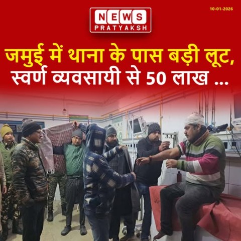 #newspratyaksh #Bihar बिहार के जमुई जिले में अपराधियों के हौसले इतने बढ़ गए हैं कि थाना के बेहद पास भी वे बड़ी वारदात को अंजाम देने से नहीं डर रहे हैं। शुक्रवार रात मलयपुर थाना से महज 20 मीटर की दूरी पर स्थित जमुई-मलयपुर मुख्य मार्ग के लोहा पुल के पास करीब 50 लाख रुपये की लूट की सनसनीखेज घटना हुई।जानकारी के अनुसार, सात हथियारबंद और नकाबपोश बदमाशों ने थोक स्वर्ण व्यवसायी को निशाना बनाया। घायल व्यवसायी की पहचान जमुई शहर के पुरानी बाजार निवासी 35 वर्षीय विक्रम उर्फ विक्की सोनी के रूप में हुई है। विक्रम सोनी ने बताया कि वह थोक स्तर पर सोना-चांदी का कारोबार करते हैं।विक्रम सोनी शुक्रवार रात बाइक से जमुई रेलवे स्टेशन जा रहे थे, जहां से उन्हें कोलकाता जाने वाली ट्रेन पकड़नी थी। जैसे ही उनकी बाइक जमुई–मलयपुर मुख्य मार्ग पर आंजन नदी के लोहा पुल के पास पहुंची, तभी दो बाइकों पर सवार छह हथियारबंद बदमाश और एक अपराधी ऑटो से वहां आ गए। बदमाशों ने चारों तरफ से घेरकर हथियार के बल पर उनके पास मौजूद नकदी लूटनी शुरू कर दी।जब व्यवसायी ने लूट का विरोध किया, तो अपराधियों ने उनके सिर पर हथियार के बट से जोरदार वार कर दिया। इससे वह गंभीर रूप से घायल होकर सड़क पर गिर पड़े। लूट की घटना को अंजाम देने के बाद सभी अपराधी धमकी देते हुए क्यूल की ओर फरार हो गए। घटना की सूचना मिलते ही एसपी विश्वजीत दयाल, मलयपुर थाना अध्यक्ष शेखर सौरभ सहित अन्य पुलिस अधिकारी मौके पर पहुंचे। घायल व्यवसायी को तुरंत इलाज के लिए अस्पताल भेजा गया। इसके बाद एसपी स्वयं अस्पताल पहुंचे और पीड़ित से घटना की पूरी जानकारी ली।