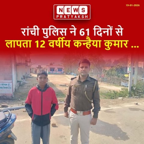 रांची पुलिस ने 61 दिनों से लापता 12 वर्षीय कन्हैया कुमार को सकुशल बरामद कर लिया हैं. कन्हैया को झारखंड के कोडरमा जिले से रेस्क्यू किया गया. बता दें कि, कन्हैया कुमार 22 नवंबर की शाम ओरमांझी थाना क्षेत्र से अचानक लापता हो गया था. बच्चे के गायब होने के बाद परिजनों ने थाने में शिकायत दर्ज कराई थी, जिसके बाद पुलिस ने मामले की जांच शुरू की. रांची के एसएसपी राकेश रंजन ने मामले को गंभीरता से लेते हुए जांच शुरू की थी. रांची पुलिस की एसआईटी ने कई राज्यों में संभावित छापेमारी भी की. लगातार प्रयासों और जांच के बाद पुलिस को आखिरकार सफलता मिली. कन्हैया को कोडरमा से सकुशल बरामद किया गया.