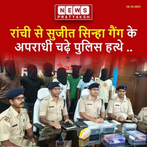 रांची के डोरंडा स्थित सत्यभामा अपार्टमेंट में फायरिंग का मामला में रांची पुलिस ने सुजीत सिन्हा गैंग से जुड़े 7 अपराधियों को हथियार के साथ किया गया गिरफ्तार..जेल में बंद गैंगस्टर सुजीत सिन्हा ने वीडियो कॉल कर दिया था अपराधिक घटना को अंजाम देने का निर्देश..अमन साहू और सुजीत सिन्हा गिरोहों के बीच वर्चस्व की लड़ाई से जुड़ा मामला...