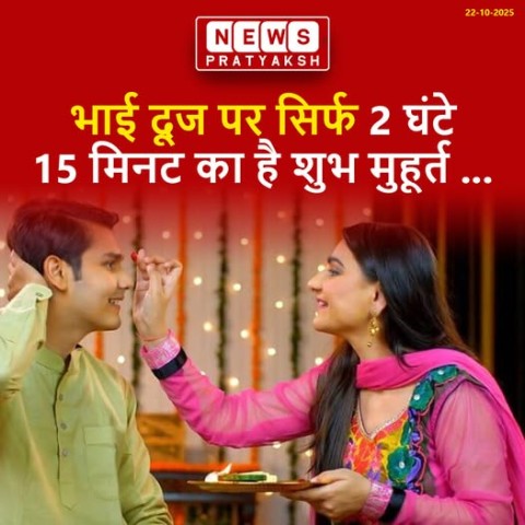 #newspratyaksh #bhaidooj #BhaiDooj2025 दीपावली के तीसरे दिन कार्तिक शुक्ल द्वितीय को भाई दूज का त्योहार मनाजा जाता है. भाई-बहन के स्नेह और आशीर्वाद का पर्व भाई दूज इस वर्ष 23 अक्टूबर को मनाया जाएगा. यह पर्व भाई और बहन के बीच प्रेम, विश्वास और सुरक्षा के पवित्र बंधन का प्रतीक है. इस दिन बहनें अपनी भाई को तिलक करती है उनकी लंबी उम्र की कामना करती हैं.पंडित प्रेम सागर पांडे के अनुसार, इस वर्ष भाई दूज का शुभ मुहूर्त बहुत सीमित रहेगा. पूजा का श्रेष्ठ समय केवल 2 घंटे 15 मिनट का ही है, जिसमें भाई अपनी बहन के घर जाकर तिलक करवाता है और बहन के हाथ का भोजन करता है. कथाओ के अनुसार इससे अकाल मृत्यु का भय नहीं रहता है.पंडित प्रेम सागर पांडे ने बताया कि इस वर्ष भाई दूज की तिथि 22 अक्टूबर की रात 08:16 मिनट से शुरू होकर 23 अक्टूबर की रात 10:46 मिनट तक रहेगी. हालांकि तिलक का शुभ मुहूर्त दोपहर 1:13 से 3:28 तक है. हालांकि इस दिन भाई को तिलक करने के कई शुभ मुहूर्त हैं, लेकिन सबसे शुभ दोपहर 1:13 से 3:28 तक का ही है. तिलक करने का शुभ मुहूर्त पहला मुहूर्त (अभिजीत मुहूर्त)- सुबह 11:43 से दोपहर 12:28 तक. दूसरा मुहूर्त (श्रेष्ठ मुहूर्त)- दोपहर 1:13 से दोपहर 3:28 बजे तक. तीसरा मुहूर्त (विजय मुहूर्त)- दोपहर 1:58 से दोपहर 2:43 बजे तक. चौथा मुहूर्त (गोधूली मुहूर्त)- शाम 5:43 से शाम 6:09 बजे तक.