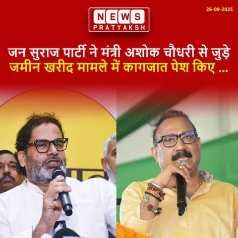 जन सुराज पार्टी ने बृहस्पतिवार को बिहार सरकार के ग्रामीण कार्य मंत्री अशोक चौधरी पर गंभीर आरोप लगाते हुए उनसे जुड़े जमीन खरीद मामलों के दस्तावेज सार्वजनिक किए। पार्टी के प्रदेश महासचिव और पूर्व विधायक किशोर कुमार मुन्ना ने प्रेसवार्ता में आरोप लगाया कि मंत्री की पत्नी, बेटी और उनसे जुड़े ट्रस्ट ने बाजार मूल्य 100 करोड़ रुपये से अधिक की संपत्तियां कम कीमत पर खरीदीं। किशोर कुमार ने कहा कि अशोक चौधरी की पत्नी नीता केसकर चौधरी ने 2021 और 2022 में पटना में दो प्रॉपर्टी खरीदी, जिन पर करीब सात करोड़ रुपये खर्च किए गए।