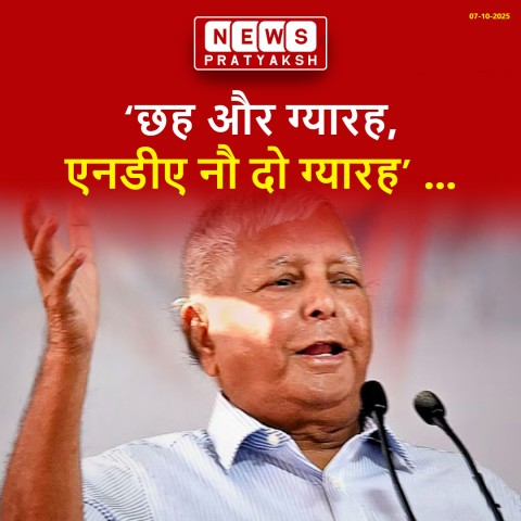 बिहार चुनाव की घोषणा के बाद लालू प्रसाद यादव ने कसा तंज पूर्व मुख्यमंत्री और राष्ट्रीय जनता दल (राजद) प्रमुख लालू प्रसाद यादव ने बिहार सरकार पर तंज कसा है। उन्होंने दावा किया है कि आगामी विधानसभा चुनाव में डबल इंजन सरकार की विदाई तय है। लालू प्रसाद यादव ने सोशल मीडिया प्लेटफॉर्म एक्स पर पोस्ट करते हुए लिखा, "छह और ग्यारह, एनडीए नौ दो ग्यारह।"