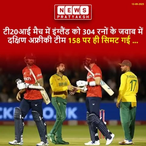 इंग्लैंड और दक्षिण अफ्रीका के बीच तीन मैचों की टी20 सीरीज खेली जा रही है. पहले मैच में डकवर्थ लुईस नियम की वजह से मेजबान इंग्लैंड को हार का सामना करना पड़ा था. लेकिन दूसरे मैच में उन्होंने रिकॉर्ड जीत दर्ज करके सबको हैरान कर दिया. शनिवार, 13 सितंबर को मैनचेस्टर के ओल्ड ट्रैफर्ड में खेले गए दूसरे मैच में इंग्लैंड ने 20 ओवर में 2 विकेट पर ही 304 रन बना दिए. जिसके जवाब में दक्षिण अफ्रीका की टीम 16.1 ओवर में 158 रन पर ही ढेर हो गई.जिसकी वजह से इंग्लैंड ने 146 रन से रिकॉर्ड जीत दर्ज की. ये टी20आई में रनों के लिहाज से उनकी अब तक का सबसे बड़ी जीत है. इससे पहले 2019 में वेस्टइंडीज के खिलाफ 137 रनों की जीत उनकी सबसे बड़ी जीत थी. इसके अलावा यह रनों के लिहाज से दक्षिण अफ्रीका की सबसे बड़ी हार भी है, जो 2024 में जोहान्सबर्ग में भारत के खिलाफ 135 रनों की हार को पीछे छोड़ देगी.हैरी ब्रुक की अगुवाई वाली इंग्लैंड टीम टी20 अंतरराष्ट्रीय मैचों में 300 रनों का आंकड़ा पार करने वाली दुनिया की तीसरी और किसी पूर्ण सदस्य देश के खिलाफ यह उपलब्धि हासिल करने वाली पहली टीम बन गई.